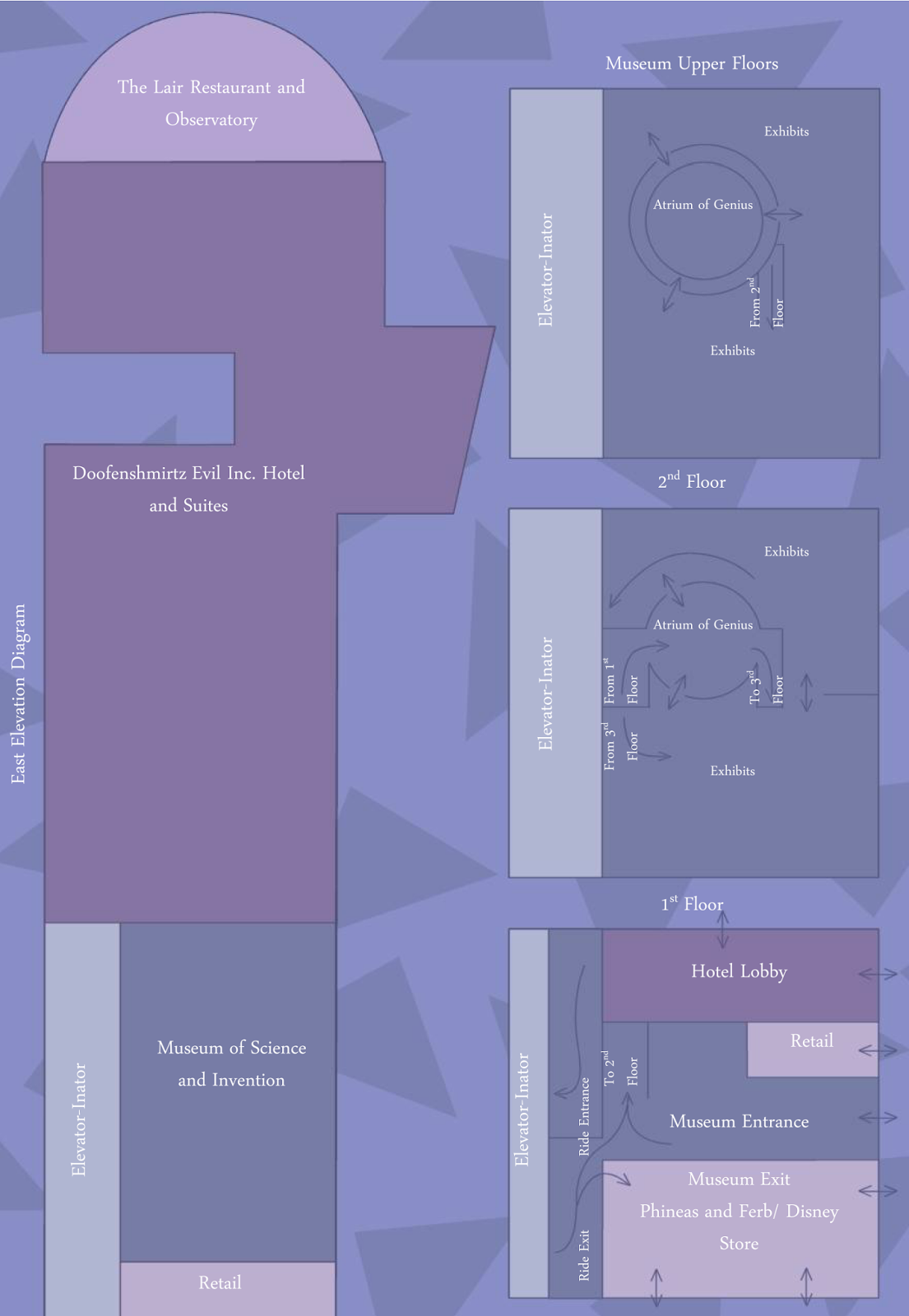 Every guest that visits the museum is transported into the world of Phineas and Ferb and experiences interactive, hands on exhibits about science and the history of invention. It is the mission of the museum to enrich the ideas, imaginations, and passion of all people and to explore the world around them in the light of science. Exhibits range from hands-on demonstrations to rides and interactive media, ensuring that there is material presented in ways suitable for all types of learners. In addition to the many exhibits and attractions, several programs are offered for the educational outreach of school children. The Doofenshmirtz Summer School of Science is where children will learn how to become the next generation of mad scientists… er, inventors! Programs for school groups will also be available. This museum will entertain and inspire tourists from around the world, but it will also provide a valuable educational environment for the people who call the Tri-State Area home.